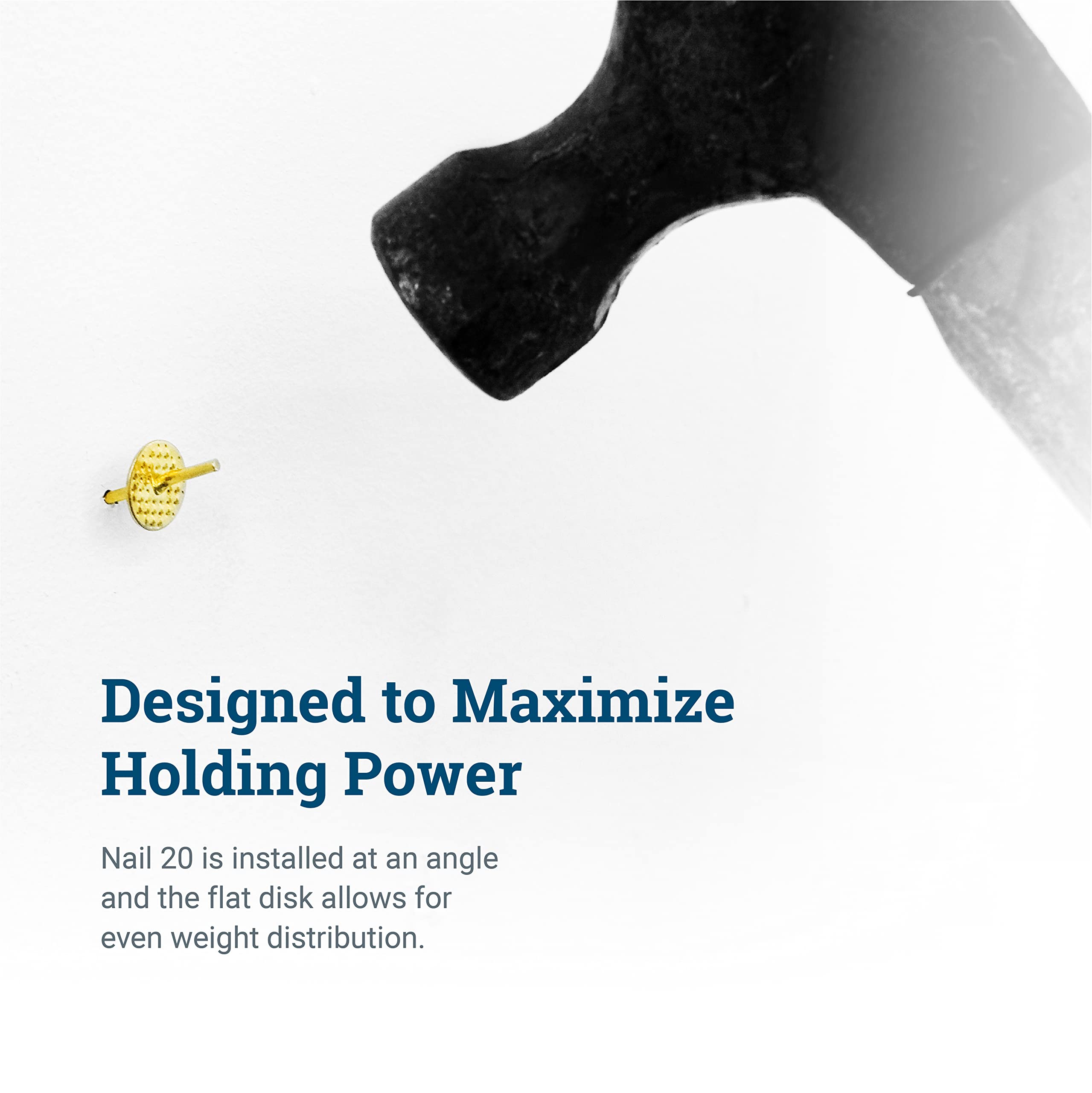 One Step Kleiderbügel sind die schnelle und einfache Lösung zum Aufhängen von Kunstwerken, Rahmen oder Bastelarbeiten unter 9 kg Egal, ob Sie 9 kg Bilderaufhänger oder 4,5 kg Bilderaufhänger benötigen, dieser kleine Bilderhaken kann das Gewicht tragen und beim Entfernen kaum Spuren in Ihrer Wand hinterlassen. How To Use Ready Nail Bilderaufhänger 9 Kg – 35 Stück – One Step Bilderaufhänger Bilder Haken Der Nagel wird schräg in die Wand geklopft, bis die runde Scheibe flach an der Wand anliegt. Einfache Installation: einfache Bedienung, einfach zu fixieren. Diese starken und scharfen Nägel hinterlassen beim Entfernen nur ein kleines Nadelloch in der Wand, was Schäden an der Wand reduzieren kann. Lieferumfang Picture Hangers 20 lbs - 35 Pieces - One Step Picture Hangers Der schnelle Bildaufhänger kann entfernt und wiederverwendet werden, sodass beim Entfernen nur ein kleines Loch für die Nagelnadel übrig bleibt Deine Erinnerung. Mit geschwellter Brust schaust Du auf Dich und Dein Werk. Sei stolz und teile es. Für Dich und Deine Liebsten machst Du Deine Bildergalerie zum Weg des Ruhms. Hier erfährst Du, wie Du Bilder ...mehr. Stahlnägel m. Messing Flachkopf 2 x 40 mm gebläut, 18 Stück 3.8 (5) Stahlnägel m Kleine Bilderhaken können wiederverwendet werden, wenn Sie vorsichtig entfernen, indem Sie den Nagel nach oben herausziehen. Einstufiger Bilderaufhänger trägt 9 kg und funktioniert als kleiner Bilderhaken in Trockenbauwänden Einfach aufzuhängende Nägel: Tippen Sie in den einteiligen Nagelaufhänger im Winkel, bis die runde Scheibe flach an der Wand anliegt