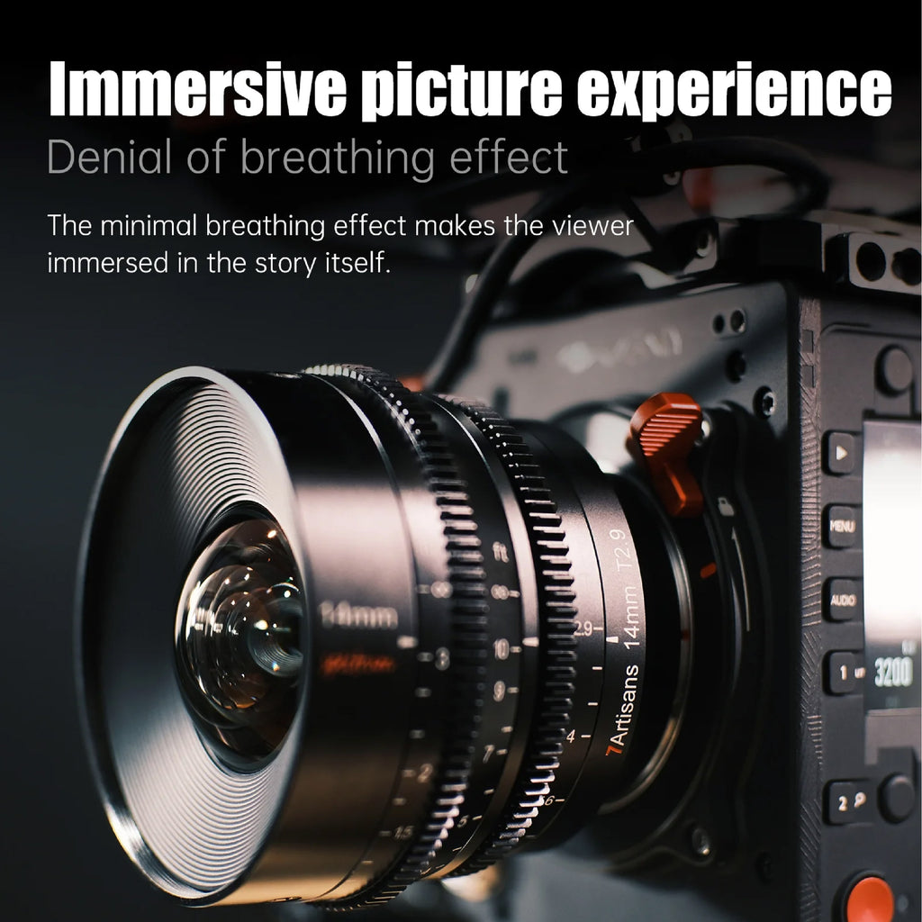 Das Cine-Weitwinkelobjektiv im robusten Metallgehäuse ist mit einem stufenlosen Blendenring ausgestattet, der einen sehr weichen Lauf hat, also ideal für Filmer geeignet. Eine solide Verarbeitung schützt die Optik zuverlässig, auch wenn es am Set mal etwas rauer zugeht 2.8 Sony 7Artisans Spectrum 14mm T2.9 Nikon Z Vollformat| 0 % Leasing Viltrox 20mm Gefertigt mit einer Vollmetallkonstruktion und entworfen, um atemberaubende Bilder zu liefern. 7artisans 14mm T2.9 Vollformat-Cine-Objektiv, kompatibel mit spiegellosen Sony E-Mount-Kameras Alpha a7 a7II a7III a7R a7RII a7RIII a7RIV a7S a7SII a9 a7C auf - Kameras und Zubehör zu günstigen Preisen Erweiterte Perspektive: Mit seiner ultraweiten 14-mm-Brennweite bietet dieses Cine-Objektiv eine dramatische und immersive Perspektive, ideal für die Aufnahme von schwungvollen Landschaften, dynamischen Architekturaufnahmen und unverwechselbaren Weitwinkel-Kompositionen, die Ihrem kinematischen Geschichtenerzählen Tiefe und Wirkung verleihen. Außergewöhnliche optische Qualität: Dieses Objektiv verfügt über ein sorgfältig gefertigtes optisches Design mit präzisionsgefertigten Glaselementen. Es verfügt über eine robuste Konstruktion, die sicherstellt, dass es den Herausforderungen von Studio- und On-Location-Aufnahmen standhält. Seine beeindruckende 114-Grad-Weitwinkel-Perspektive ermöglicht es Ihnen, umfangreiche Szenen mit feiner Klarheit und Tiefe zu erfassen, während seine kompakten Abmessungen es zu einer vielseitigen Wahl für eine Vielzahl von Aufnahmesituationen machen. Entdecken Sie eine neue Dimension des Geschichtenerzählens durch das Objektiv des 7artisans 14 mm T2., 9 Cine Objektivs. 🚗【Reibungsloser Fokus und Blendensteuerung】 Entwickelt für die Anforderungen des professionellen Filmemachens, verfügt das Objektiv über verzahnte Fokus- und Blendenringe, die präzise, reibungslose Anpassungen ermöglichen, unerlässlich für genaue Fokuszüge und Belichtungskontrolle während der Aufnahme. Tauchen Sie ein in die Welt des professionellen Filmemachens mit dem 7artisans 14 mm T2., 9 Cine Objektiv. Helle Blende: Die T2., 9-Blende ist beeindruckend schnell für ein Weitwinkelobjektiv dieses Kalibers und ermöglicht eine hervorragende Leistung bei schlechten Lichtverhältnissen und ermöglicht eine kreative Tiefenschärfe-Kontrolle. 7artisans Tilt 50mm F1.4 Objektiv, Vollformat, manueller Fokus für